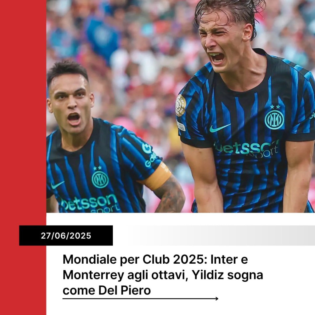Il Mondiale per Club 2025 entra nel vivo e regala già spunti intriganti sul piano tecnico, emotivo e narrativo. La fase a gironi ha iniziato a delineare le prime gerarchie: l’Inter ha conquistato l’accesso agli ottavi di finale, così come il Monterrey, che conferma la qualità crescente del calcio nordamericano. Ma a tenere banco sono anche le dichiarazioni di giovani talenti e allenatori ambiziosi. Tra questi spicca Kenan Yildiz, giovane promessa della Juventus e della nazionale turca, che guarda a Del Piero come modello, e Igor Tudor, pronto a sfidare nientemeno che Pep Guardiola nel prossimo turno a eliminazione diretta.