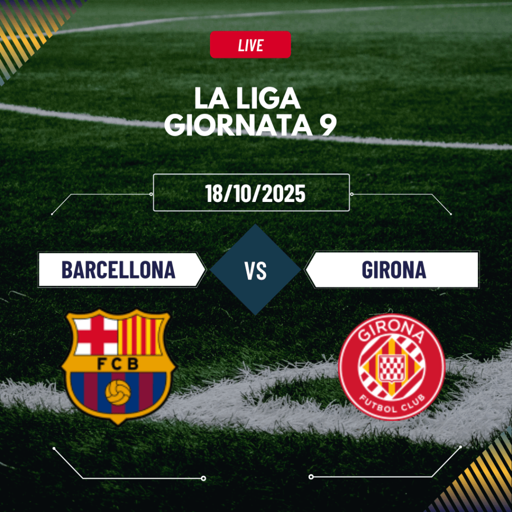 Barcellona e Girona si affronteranno nella nona giornata della Liga spagnola in una sfida tutta catalana in programma il 18 ottobre 2025 alle ore 16:15. Una partita che promette scintille non solo per il valore storico del confronto, ma anche per la situazione delle due squadre: il Barcellona deve reagire a un momento difficile, mentre il Girona proverà a sfruttare ogni occasione per ottenere punti preziosi. Entrambe le formazioni arrivano a questo appuntamento con motivazioni molto diverse, ma con un obiettivo comune: muovere la classifica e rafforzare la propria posizione in campionato.