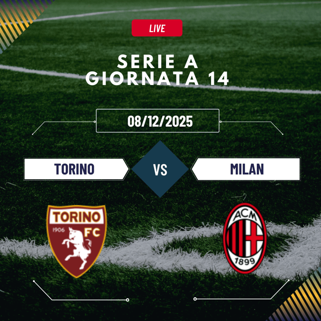 Il posticipo dell’8 dicembre tra Torino e Milan, valido per la giornata numero 14 della Serie A, si preannuncia come una gara dal sapore speciale. Da un lato i granata, ancora alla ricerca della loro identità e di risultati convincenti. Dall’altro, un Milan solido che vuole continuare a macinare punti per restare agganciato al treno delle big. L’appuntamento è per le 20:45 in uno stadio che si aspetta risposte da entrambe le formazioni. A separarle, non solo la classifica, ma anche lo stato d’animo e il rendimento recente.