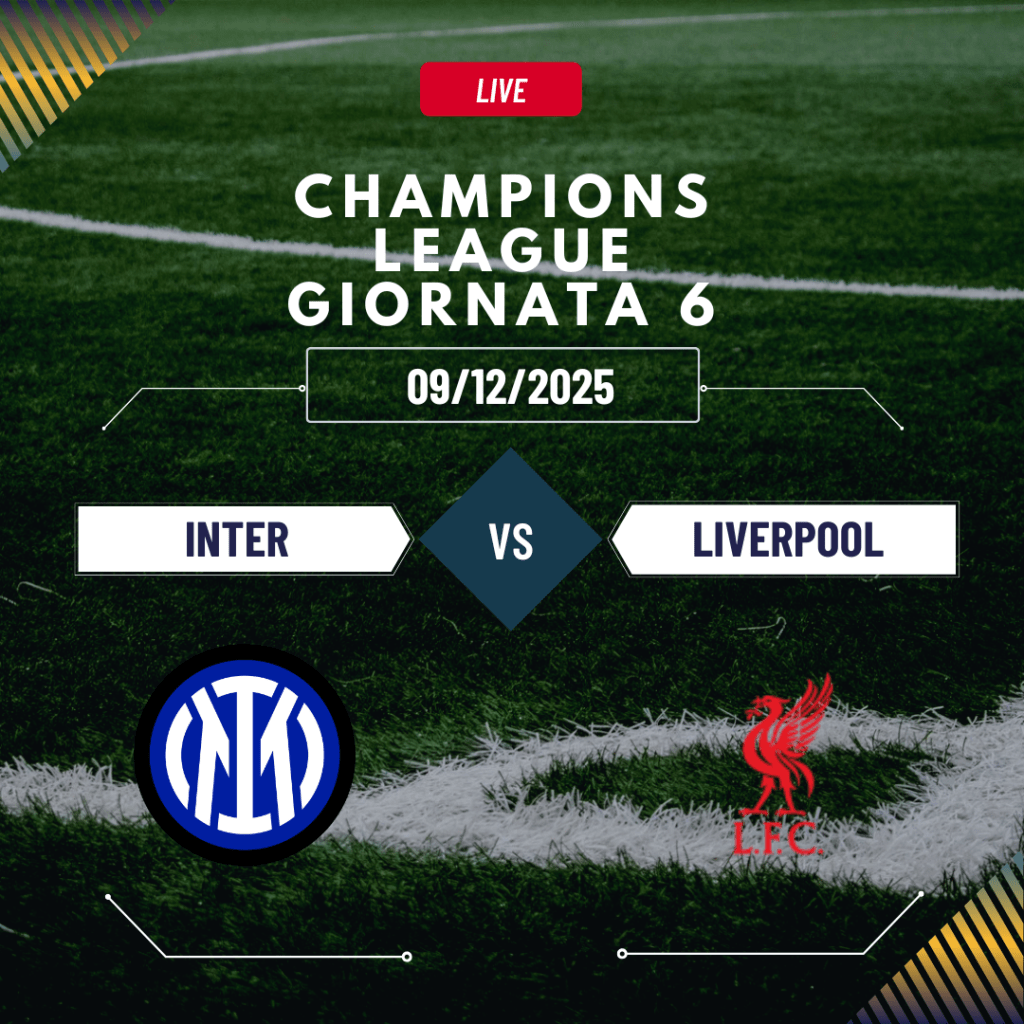 La Champions League entra nel vivo e lo fa con una sfida da brividi: Inter contro Liverpool, sabato 9 dicembre 2025 alle 21:00. L’appuntamento è di quelli da cerchiare in rosso, con entrambe le squadre chiamate a dare tutto nell’ultima giornata della fase a gironi. I nerazzurri proveranno a sfruttare il fattore campo per strappare il passaggio del turno, mentre i Reds, reduci da un cammino zoppicante, cercano il colpo esterno per raddrizzare il proprio cammino europeo. Una partita che promette gol, emozioni e tensione fino all’ultimo minuto. Il prestigio e il blasone sono altissimi, ma contano solo i punti.